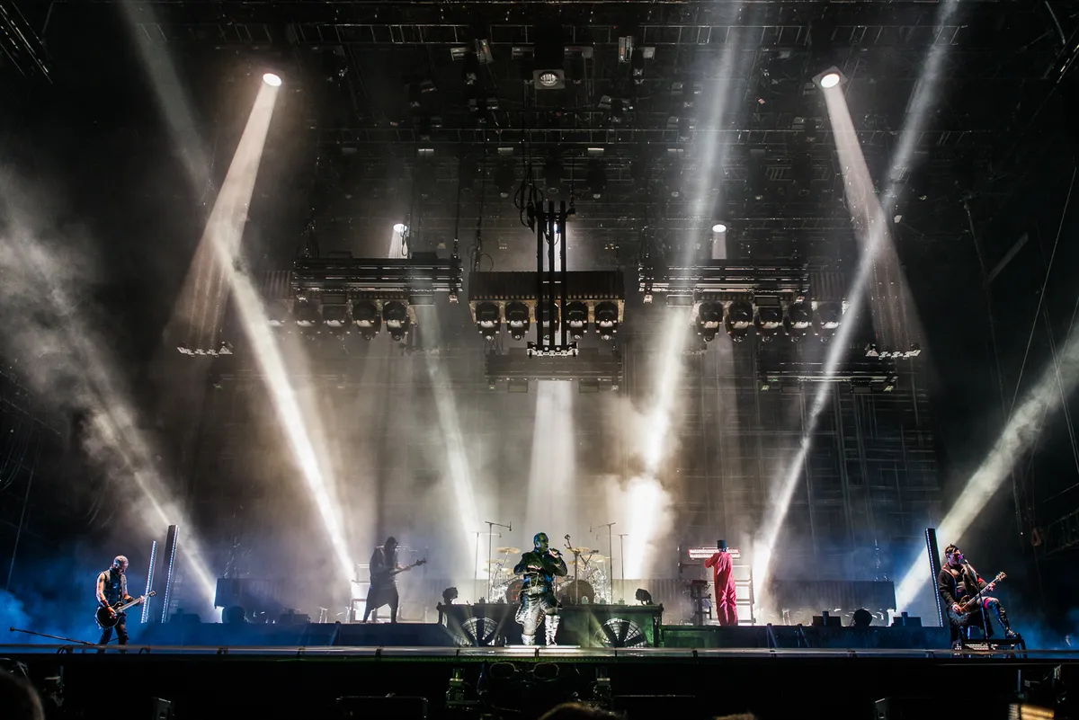 Monsterlijke maskers waar indrukwekkende vlammentongen uit likken, vuurwerk voor, achter en op het podium, en Till Lindemann die zichzelf met een bomgordel opblaast: zomaar wat visueel geweld in alleen al het eerste halfuur Rammstein. ’s Werelds grootste industriële metalband is op Pinkpop weer spectaculair als vanouds. En toch is er ook iets ontroerend aan de show van Rammstein. Hoe kan dat toch?
