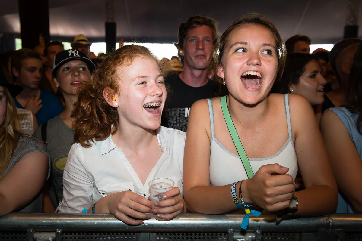 Hoewel de tent gevuld is met jong en oud, zijn het vooral de tieners die uit volle borst, met de ogen dicht, meezingen. De poëtische teksten over liefdes en vriendschappen, overgoten met een donker sausje, doen het goed.