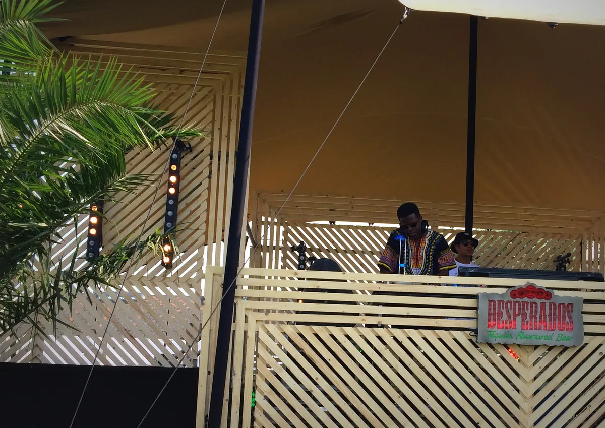 Van Le Le terug naar de Kaap, waar Philou Louzolo op het punt staat om de boel over te nemen van Orpheu The Wizard. Louzolo is een mooie verschijning. Hij heeft zich vandaag gehesen in een schitterend Afrikaans gewaad met felle kleuren, maar zijn roots liggen dan ook in Congo; ook al heeft hij daar nooit echt gewoond en groeide de dj gewoon op in Zeeland. De lichten van het Desperados-logo op de voorkant van de dj-booth kleuren mee op het ritme van de beat. Het is opvallend om te zien dat Louzolo, toch niet de grootste naam op het affiche vandaag, het uit de kluiten gewassen veld voor zich helemaal volgespeeld krijgt. Dat doet hij op zijn eigen manier, met zomerse muziek, met Afrikaanse ritmes, met veel afro en boogie. Zijn muziek zit gigantisch in de heupen en voor het eerst zien we mensen vandaag echt dansen. Je zou hem gerust een tropische verrassing kunnen noemen. De track Sin Tabla van El Sayulitas komt langs tegen het einde van zijn set, het is een vroeg hoogtepuntje voor velen.