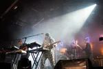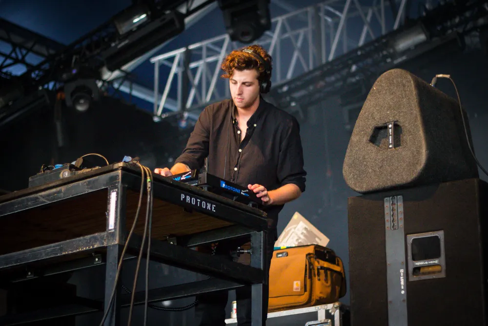 Bij Maribou State, bijvoorbeeld. Het producersduo bracht vorige maand hun debuutalbum Portraits uit, dat op plaat ergens tussen de licht melancholische elektronicaliedjes van Caribou en de mysterieuze funk van Jungle ligt. Live staan ze ook nog eens met een band op het podium, dus op papier de ideale act voor Pitch. Helaas komt het nog niet helemaal lekker tot zijn recht door de meegenomen zangeres die nét iets te jazzy wil uithalen, statische presentatie en een wat meanderend middenstuk. Richting het einde van de set revancheert Maribou State zich alsnog met prijsnummer The Clown.