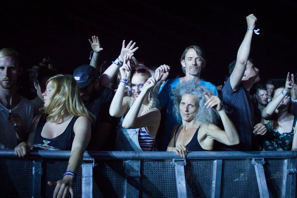 Gisteren zagen we al dat het - geheel volgens wens van organisatie en publiek - iets rustiger is op het terrein dan vorig jaar, toen Moderat nog voor opstoppingen zorgde en de Gashouder af en toe onbereikbaar was door de drukte. Het is ook deze editie af en toe wat dringen in de zalen, maar bij elke show kun je wel binnenkomen en op het veld is er wat meer lucht gecreëerd. Meer ruimte om te dansen, zou je zeggen, maar met deze hitte dan wel het liefst op loom, traag tempo.