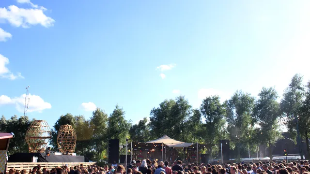 Opeens is het overal druk op het Westergasterrein. Bij het enige onoverdekte podium De Kaap puilt het de hele dag uit, op het grote grasveld moet je slalommen tussen de mensen die liggend hun benen sparen en het stuk tussen Westerunie, Transformatorhuis en Gashouder staat tot diep in de nacht vol. Anders dan gisteren zijn er nu ook rijen, zoals bij de DJ-set van Dollkraut waar al snel niemand meer bij kan.