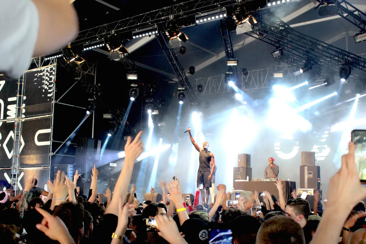 Ook Yung Lean maakt indruk, met zijn ietwat vervreemdende autotune hiphop en visuals met oorlogsbeelden. Bij oudgediende DJ Shadow is het opvallend rustig, wat met zijn toch wat gedateerde geluid goed te begrijpen is. Bij de futuristische hiphopbeats Lunice staat het vervolgens wel weer ramvol en is het geluid luid genoeg om er tegen aan te leunen. Maar nog veel heftiger is aan het eind van de avond Skepta, die na Woo Hah al op de kop gezet te hebben, nog even doorgereden is naar Amsterdam. Zijn grime is een stukken harder dan die van Stormzy. Veel meer bas, wat zeker in de Gashouder betekent dat je broekspijpen wapperen, en vooral venijnigere hooks. Absurd ook hoeveel krakers hij inmiddels op de plank heeft liggen. ‘That’s not Me’, ‘Shutdown, ‘Man’, ‘It Ain’t Safe’; ze staan allemaal op zijn laatste album, maar worden allemaal meegeschreeuwd door de kids die elkaar verdrukken op de eerste rij alsof het al klassiekers zijn. Zijn eigen wat uitgebluste indruk wordt goed gemaakt door de energie in de zaal.Tot achter ver achterin de Gashouder gaan de armen om de haverklap de lucht in.