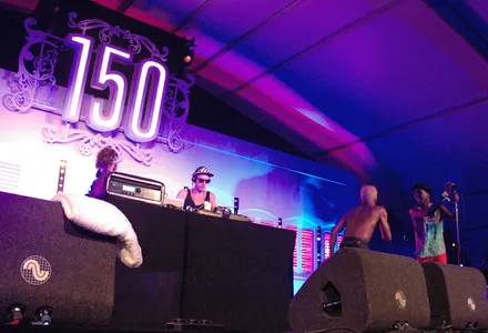 Op weg naar Jungle By Night (JBN) in de nieuwe 150 tent (iets met een jubilerend rummerk), waar Skip & Die als opener al de peilloze diepte mocht proeven. JBN is dat niet die geheide festivalhit met die subtropische Afrobeat en dwingende funkgrooves? Precies! Vanaf de aankondiging stroomt de langwerpige tent vol en de eerste rijen staan vol met joelende tienermeisjes. Vanaf het zonovergoten grasveld is het ook prima genieten van het inmiddels razend goed ingespeelde negental. De Amsterdammers zijn sinds ze verrasten op Into The Great Wide Open 2010 zelfverzekerder geworden en gegroeid in presentatie, hechtheid en lef. Ze mogen dan in de States nog geen druppel vuurwater bestellen, maar hier bouwen ze weer een dik feest. Ook dankzij Mokumse branie en een slimme Sesamstraat shuffle, inclusief Pino-figurant met blaasbalg als navelstreng. In Nederland kunnen ze weinigen meer verrassen en de vraag is waar dat heen gaat met die jongens, die alsmaar beter worden? Nou, de grenzen over: vandaag eerst even Istanbul Jazz, dan Sziget en in oktober spelen ze op 's werelds grootste showcase festival voor wereldmuziek: Womex in het Griekse Thessaloniki.