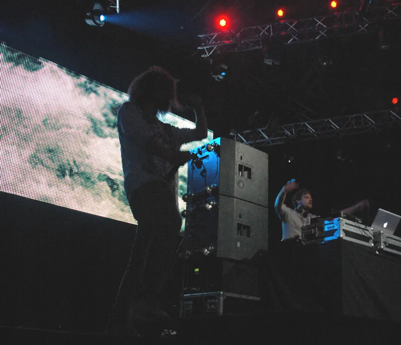 Azari & III is daarentegen helemaal elektronisch, maar evenzeer retro. De producers uit Toronto serveren dat zo mogelijk nog beter en vooral heter dan Waterhouse. Azari maakt een mix van oude Chicago house en funky disco en hangt ergens tussen de dancepop/disco van Crystal Waters' Gypsy Woman, Groove Is In The Heart (Deee Lite) en pompende disco met eighties housebeats à la Good Life (Inner City). Klinkt op papier wellicht wat fout en zo oogt het op het eerste gezicht ook. Het is soms over het randje en dat werkt als een bezetene. Die twee met masker en bril nogal potsierlijk uitgedoste mc's verstaan niet alleen de kunst van het presenteren maar ook van het dansen. Het duo voert het ganse publiek mee in een wervelende, hitsige show. Als ze tegen elkaar aan rijden, gaat er een luid gejuich door de hele tent. Onbeschaamd dansend geven ze het gevoel dat het niet uitmaakt wat en hoe je het doet, hoe je eruit ziet en hoe je danst. Je zou bijna vergeten dat de twee producers achter de decks de werkelijke basis van Azari zijn. Het geheim van de live-show zit echter in de twee dansers, die de boel naar een sexy en dampend discofeest tillen. Ze stonden vorig jaar al in de Lowlands nacht geprogrammeerd, een eventuele plek in het avondprogramma lijkt een gegarandeerde hit.