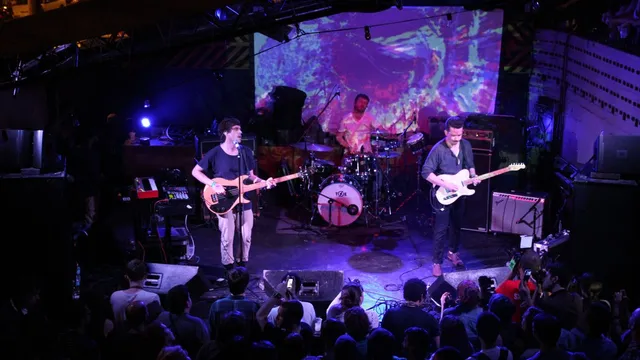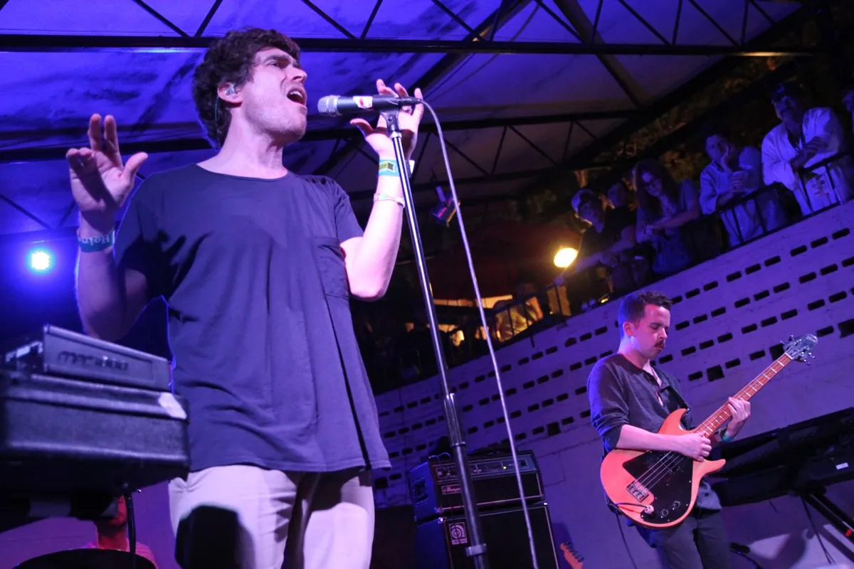 Direct aansluitend speelt de belangrijkste act van de avond: Bear In Heaven, typisch zo'n band die door Pitchfork een bestaansrecht kreeg. Met hun tweede album Beth Rest Forth Mouth beleefde het trio een bescheiden doorbraak, vooral dankzij single Lovesick Teenagers. Frontman Jon Philpot is een technisch goede zanger, maar hij treedt niet op de voorgrond. Die rol is voor synthesizer en diverse samplers. Hij zingt met monitoroortjes in, en dat moet wel, want hij doseert zeer afgewogen, de microfoon steeds verder weg en weer dichterbij. In de aardige nieuwe single The Reflection Of You roept hij de mensen op met hem mee te dansen, een oproep waar maar zeer voorzichtig aan toegegeven wordt. Wat de band zelf doet in dat liedje lijkt meer op hinken op twee gedachten, tussen toegankelijk dansbaar en eigenzinnig. En toch wordt de set gaandeweg steeds spannender, ritmisch meeslepender en beter.