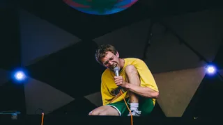 Arme Rey. Hij is vandaag jarig, vertelt–ie, maar zijn vader en moeder hebben hem niet gefeliciteerd. Daarom doet hij naast een handvol positieve tracks ook een emonummer waar de eenzaamheid wel héééééél pathetisch wordt aangedikt. Gelukkig hangt hij ook de spreekwoordelijke slingers op tijdens zijn show, en gooit zelfs een opblaasorka het publiek in. Zijn dj draagt een SMIB-vest en een Yung Nnelg-shirtje, en dat is precies de hoek waar je zijn muziek ook in moet zoeken: vurige alternatieve trap waarop je uitstekend kunt moshen.