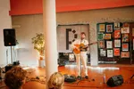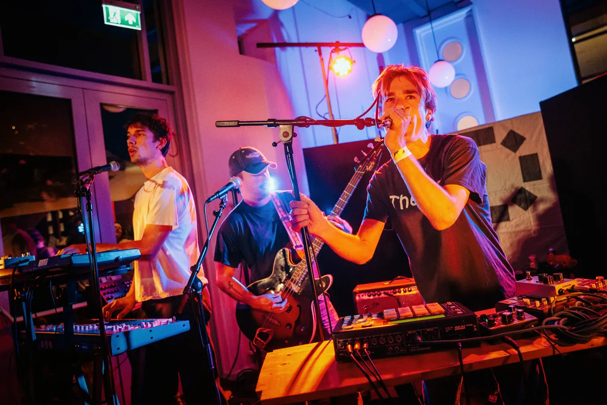 Wanneer zangeres Tessa vraagt: “Wie van jullie heeft ons al eens eerder gezien?”, gaan er verrassend veel handjes de lucht in. De Tilburgse band lijkt er zelf ook een beetje van te schrikken, al helemaal als sommige tracks vervolgens zelfs worden meegezongen. Het zal zijn waar de band stiekem op hoopte; de meezingrefreintjes volgen elkaar snel op in deze folky indierock die doet denken aan Big Thief. Maar dan in een wat hoger tempo, wat meer richting de jaren-2000-indierock. Niet alleen door de garage-y gitaarpartijen, maar ook door de knapperige synthesizers. Ja, de vijfkoppige band voegt op speelse wijze graag een elektronisch elementje toe. Leuk om te zien, al kan een groot deel van het publiek het alleen maar horen. De kelder van Opoe Sientje staat namelijk, vrij letterlijk, tot de nok vol.