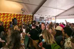 Binnen bij Plato ruikt het naar een combinatie van eindexamens en het galabal: angstzweet en hormonen. Honderden gezichtjes staan op standje 'gaat het me lukken?' en god weet hoe lang ze al hebben moeten wachten. De band arriveert via de achterkant fashionably late en verlaat de wagen vreemd genoeg met latex handschoenen aan. Het gegil zwelt aan, de band neemt in een hoek plaats achter een tafeltje. Inge (28) uit Woerden staat helemaal aan de andere kant, maar baalt niet. 'Een vriendin van mij is verder in de rij, het gaat mij voornamelijk om dat ik een mooie foto van de band kan maken.'
