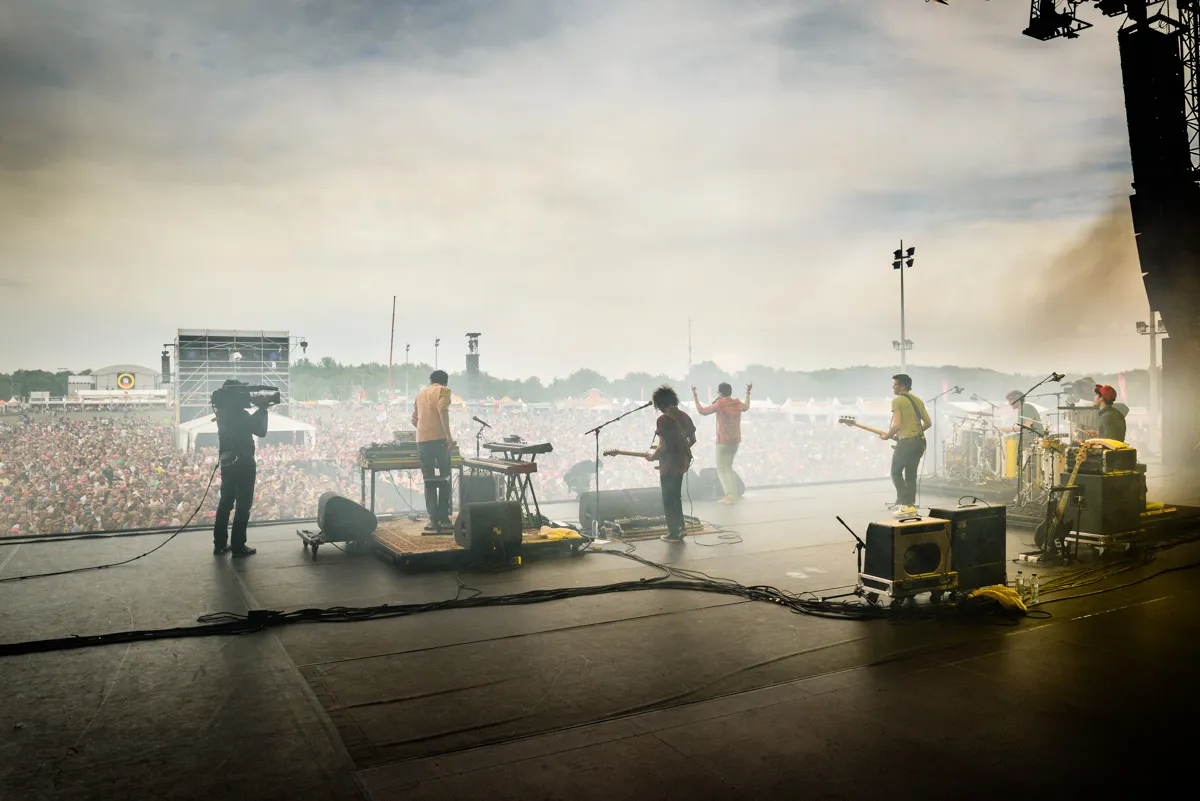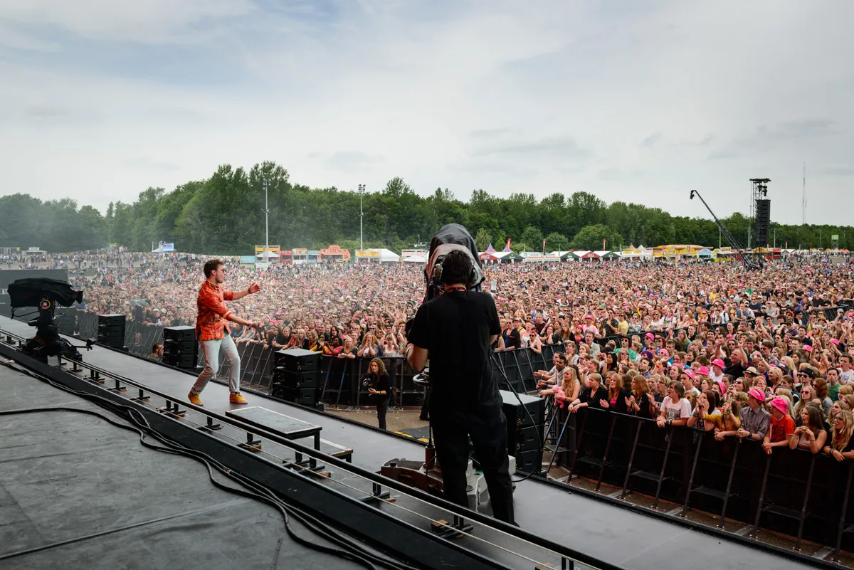 …maar bloeden gaat het nergens bij Handsome Poets, zo keurig spelen ze vandaag binnen de lijntjes van Landgraaf. Een gedrocht van een show, maar vooruit: hij blijft wél overeind staan als opener van de Mainstage.
