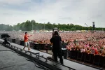 'We are on this road together, kom op jongens, met z'n allen!' Een glimlach prijkt op het gezicht van de zanger van Handsome Poets. En ja hoor, de vroege vogels in het veld klappen gedwee mee alsof ze bij Paul de Leeuw in de studio staan, en springen mak op en neer voor 'Dance (The War Is Over)'. Is er een betere manier om het Pinkpop-hoofdpodium te openen dan met de positivo-pop van deze vrolijke mannen uit Gouda?