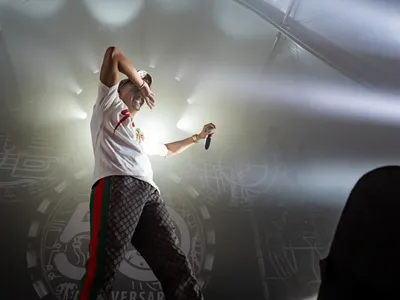 Daarom opent Boef deze show – hij noemt dit zelf zijn allerbelangrijkste ooit – met een stel helder verstaanbare en harde tracks om uit te leggen waar hij vandaan komt. In ‘Gucci Pet’ vraagt hij om respect voor vrouwen ‘want die dragen je’. Voor ’Sofiane’ briest hij dat we eerst maar eens wat over hem moeten weten, voordat we hem een voorbeeldfunctie toedichten. Hij rapt pissig dat zijn vader in de gevangenis zat, zijn moeder alcoholist was en hij dus in Nederland in de gevangenis belandde. De vrouw die hem heeft opgevoed, die kreeg kanker en overleed. ‘Ik had geen ouders om te zeggen wat fout was.’ Ja, dat is wel een wat gemakkelijk excuus voor de vele domme shit die hij heeft uitgehaald, maar tegelijkertijd is hij een behoorlijk sterke rapper: hij geeft een groep jongeren een stem die in de media nauwelijks gehoord worden, vouwt persoonlijke verhalen uit tot nummers die zich stevig in je hersenpan verankeren en resoneren bij hele hordes kinderen. Juist daarom vindt hij het zo’n big deal om hier op Pinkpop te staan, waarschijnlijk: hij hoopt dat ooit heel Nederland van hem gaat houden, en een boeking op zo’n mainstream festival is een belangrijke stap de goede kant op.
