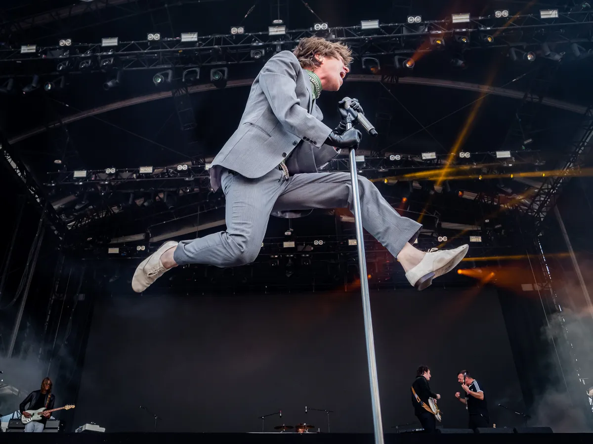 Zanger Matthew Schultz is best een gekke boy. Met zijn jasje, met zijn maniertjes, met zijn handschoentjes. En meteen vol in de aanval op het publiek. Een echte Ajax-mentaliteit: alsmaar jagen op die bal, en meteen in het begin van de set het publiek inspringen.