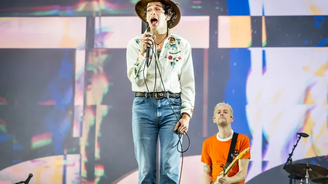 Dat gebeurt zo’n beetje tegelijkertijd in de hele show van de Britse band, die van indiegroep voor emotionele tieners uitgroeide tot de meest ambitieuze poprockband van zijn generatie. Kijk maar eens naar die glitchy visuals en die gigantische lichtgevende rechthoek (het minimalistische logo van de band): hartstikke indrukwekkend. Maar ja, bij vlagen ook wat veel van het goede. Die danseressen, dat had bijvoorbeeld niet gehoeven. En de tekst van ‘I Like America & America Likes Me’ – waarin Healy zich begraaft onder een allesbehalve subtiele laag autotune - voelt ineens wel quasi-diepzinnig als je hem op de grote schermen mee kunt lezen.
