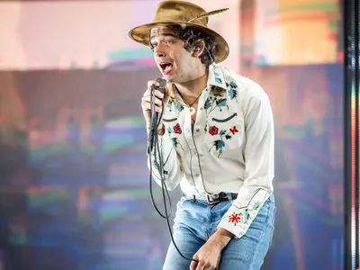 Tuurlijk zitten er in het voorvak al wat mensen te wachten op Fleetwood Mac. Maar rond een uur of drie ziet het voor het hoofdpodium vooral zwart van jonge meisjes in shirts van The 1975. Vlak voor de Britse formatie zijn set aftrapt, worden ze alleen allemaal verborgen onder poncho’s: het water stort ineens met bakken uit de lucht. Best passend hoor, want Matty Healy & co. zijn bepaald niet vies van een beetje melodrama. Al in de bitterzoete opener ‘Give Yourself A Try’ zingt Healy over het leed van ouder worden en een fan die zelfmoord pleegde. Voor het springerige ‘TOOTIMETOOTIMETOOTIME’ begeeft de frontman zich voorop het podium, zomaar in de regen. Hij is een charmeur met dik Brits accent en cowboyhoed die graag de rockster uithangt, maar minstens zo graag de spot drijft met alle clichés die daarbij komen kijken.