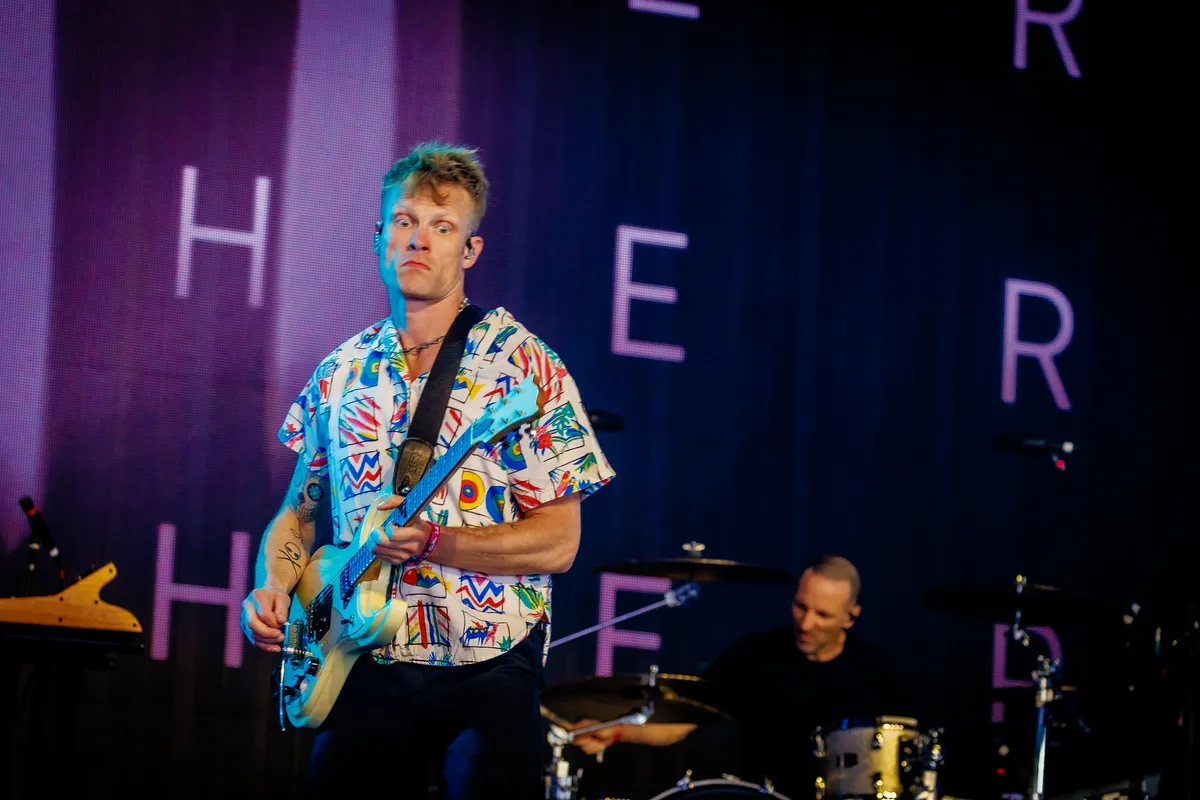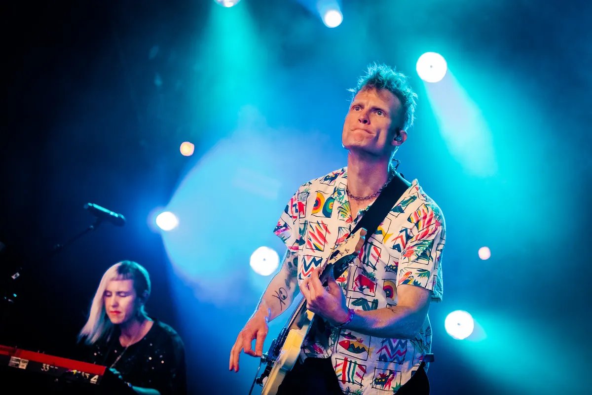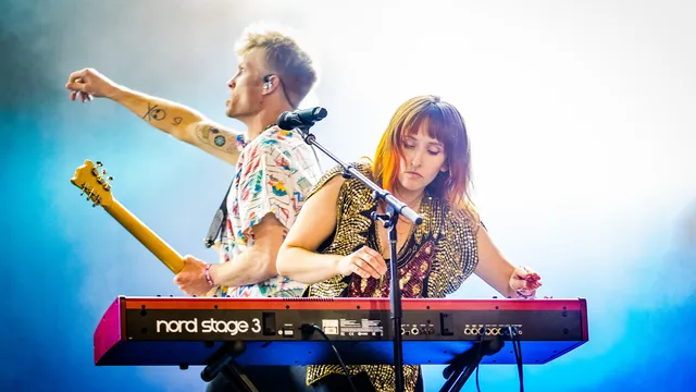 Live blijft de band redelijk overeind. Dit is met name te danken aan frontman Ryan Guldemond. Met zijn kleurrijke blouse, strakke kop en Peaky Blinders kapsel doet hij het goed op camera. De grote schermen aan de zijkant van het podium zijn vandaag zijn beste vriend, terwijl hij om de haverklap stoer van gitaar wisselt.