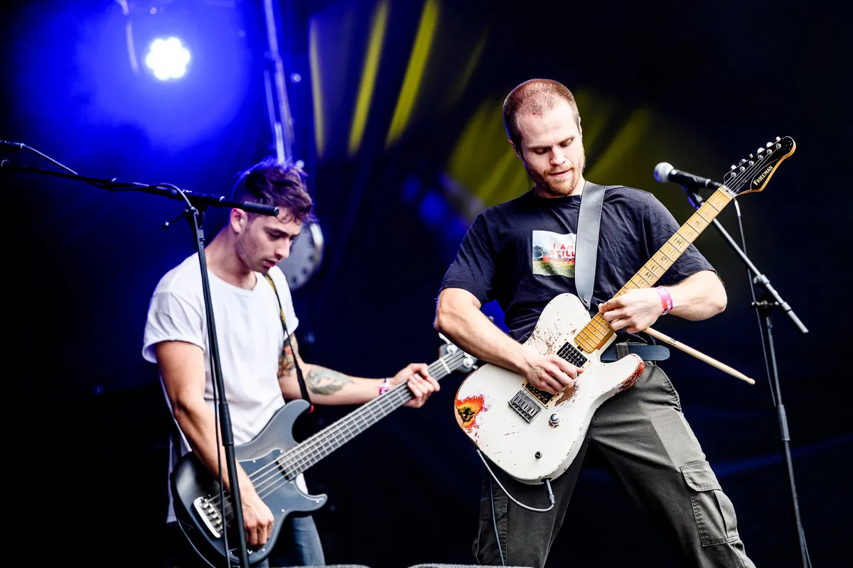 Dit weekend rijgt Pinkpop de ene na de andere spierballen-punkrockband aan elkaar. Van Ten Times A Million naar Deftones naar Sea Girls naar Mother Mother naar Dead Poet Society, Om er een paar te noemen. Die laatste is by far de meest onbekende van de roze punkrock parade en dat weten ze. Met ogen vol ongeloof turen ze naar het volle veld van Stage 4 aan hun voeten. ‘We are used to play very small bars!’ zegt de verbaasde zanger en gitarist Jack Underkofler tegen ongeveer vijftig keer zijn normale aantal kijkers.