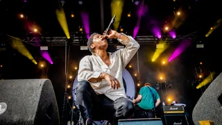 Zo’n Volbeat-show zit vol met nummers die allemaal een ander doel hebben. Soms horen we metal, dan weer psychobilly en zelfs hier en daar wat poppy rock. En het is wel leuk hoor, zo’n korte cover van Ring Of Fire van Johnny Cash die uitmondt in ‘Sad Man’s Tongue’. Op een gegeven moment komt er zelfs een budget ZZ Top duo met glitterpakjes aanzetten om een saxofoon solo neer te leggen. Maar eigenlijk niet leuk genoeg om echt te inspireren. Het Pinkpop publiek wil eigenlijk het liefst duivelhoorntjes maken en keihard meeschreeuwen met Poulson’s croonerstem.