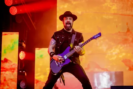 Is Volbeat vernoemd naar een Pokémon? Welnee joh, de naam komt van het Dominus-album Vol.Beat, het eerste groovemetal-project van zanger Michael Poulsen. En eigenlijk is die plaat een leuke deepdive in de geschiedenis van de Deense rockabillymetalrocknroll-fusionband. Vol.beat staat aan de wieg van wat we vanavond horen. Een hoop groove- en metaldrops, maar met een 180 graden ommezwaai in de songwriting. Tegenwoordig bestaan bijna alle Volbeat-songs uit majeur akkoorden. Maar het meest opvallend blijft de croonerstem van Poulson, geïnspireerd door 50’s rock’n’roll die altijd aan stond in zijn ouderlijk huis.