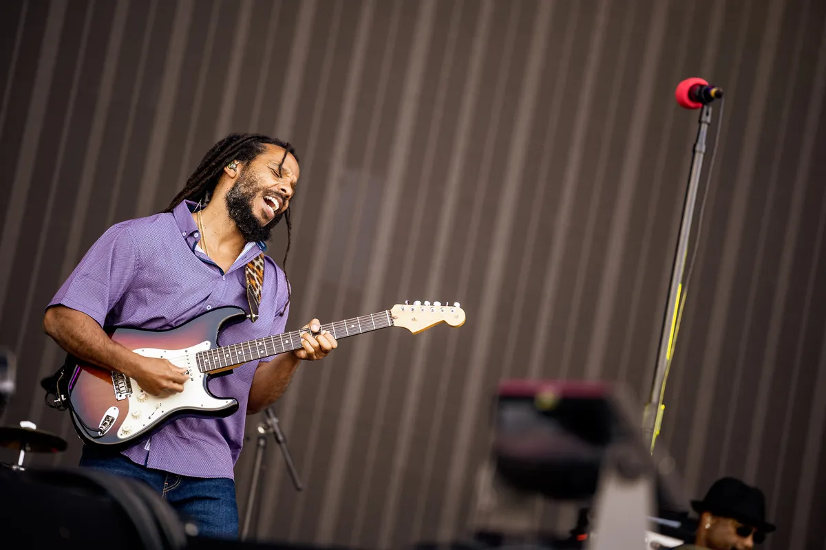 Ziggy Marley daarentegen, die eert zijn pa Bob met een glimlach. Niet alleen vandaag, maar het hele jaar rond tourt hij de wereld over als tribute act aan de populairste reggaeartiest aller tijden. Dat doet hij vandaag vrij natuurgetrouw met een tienkoppige band. Twee goeie, niet al te uitgesproken backingzangeressen. Een percussionist die loom zijn gangetje gaat. En een sloot aan onverwoestbare songs. Er komen er heel wat voorbij: ‘I Shot The Sherrif’ (met een cool dubby break en echo op de snare). ‘Jamming’. ‘Show Me Looooooove’. Als je dan een greatest hits-show kunt doen, is het wel een gemiste kans dat–ie ‘Three Little Birds’, ‘Redemption Song en ‘No Woman, No Cry’ overslaat, maar goed. Verder zitten er weinig verrassingen in de show, en geen enkele anekdote van Ziggy over zijn vader. Het blijft bij een muzikale tribute.