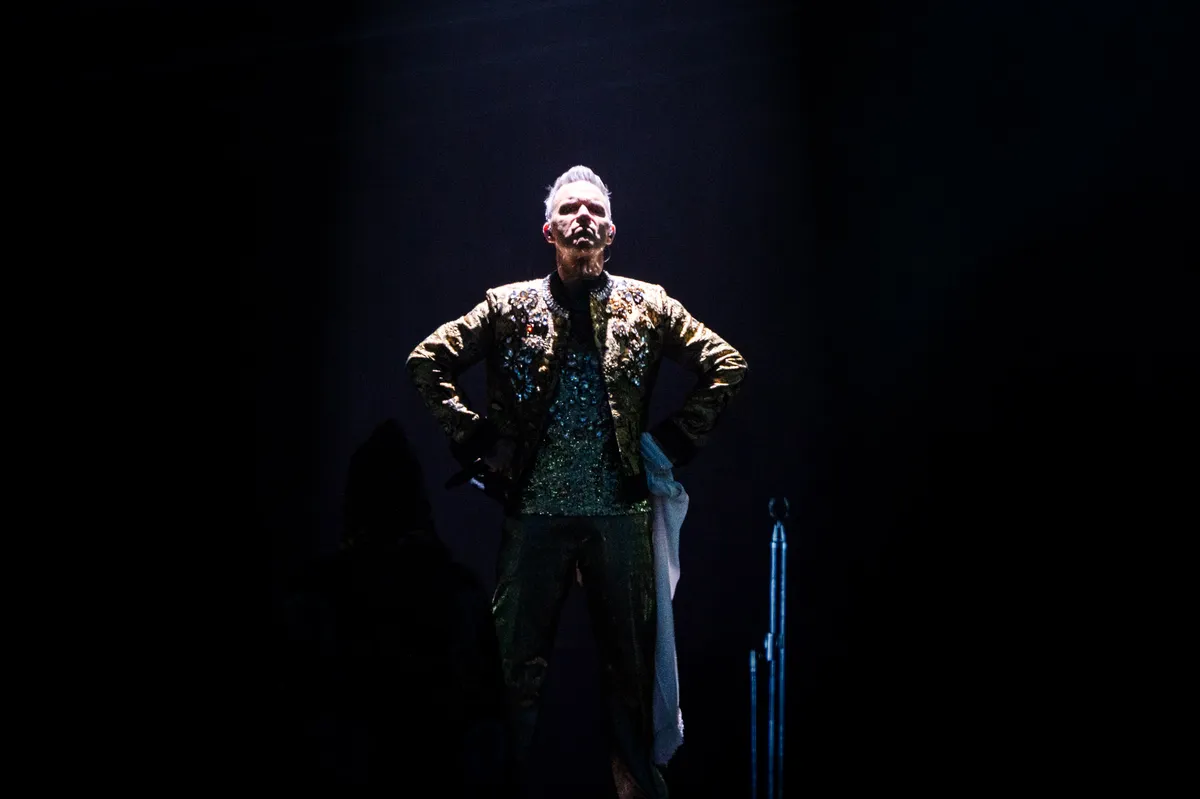 Er zijn twee soorten Robbie Williams-liedjes, aldus Robbie Williams: 'Liedjes waarin ik mezelf fucking amazing vind, en liedjes waarin ik eenzaam ben en gered wil worden. Deze valt in de tweede categorie.' Hij zet de prachtige sleper 'Undone' in, inderdaad een 'blue song' in zijn oeuvre, net als 'Strong' kort daarvoor. Jij denkt dat ik sterk ben? Je hebt het mis. Het is de comedown na de glitter-entree zoals we die maar al te goed van hem kennen. 'Let Me Entertain You!', brulde hij in een gouden pak, behangen met glimmende juwelen, de joker in het kaartspel van de Britse popmuziek. 'My name is Robbie Fucking Williams, this is my band, this is my arse!'