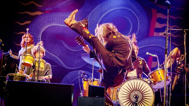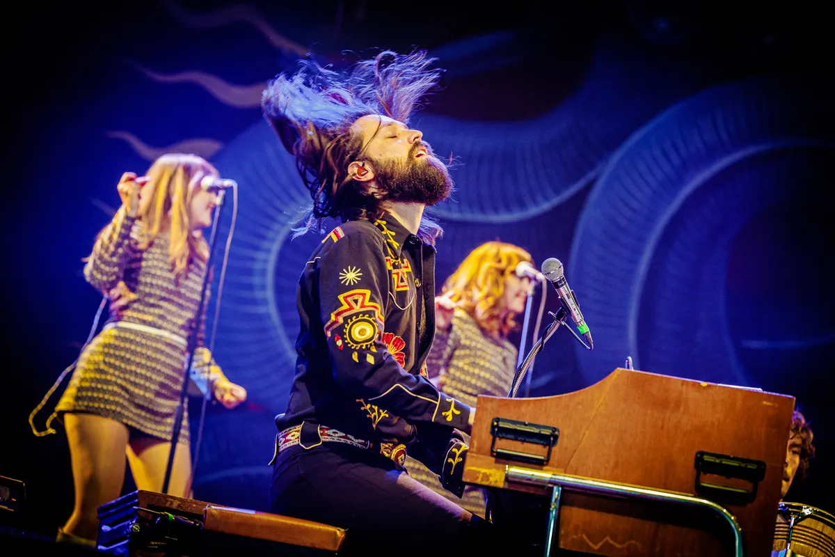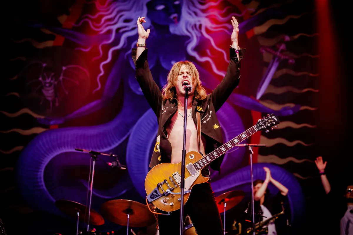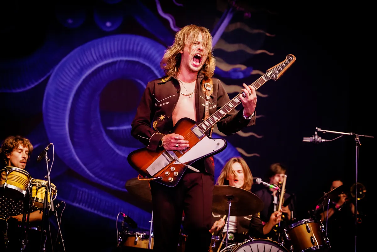 Het is pas de derde keer Pinkpop voor het van oorsprong Limburgse trio DeWolff. In 2010 stonden ze er als jonge puppy’s met scherp gevoel voor traditie, toen nog als trio. In 2019 vlogen ze lastminute in als vervanger voor The Marcus King Band, en nu zijn ze met de volle tienkoppige roedel op pad. Organist Robin Piso en broertjes Luka (drums) en Pablo (gitaar) vormen nog altijd de kern, maar krijgen inmiddels ondersteuning van twee zangeressen, een percussionist en een trio blazers dat nog wat extra soul in de songs tettert. Echte hits heeft DeWolff niet, het is die supersolide livereputatie waar ze het van moeten hebben, van de lol waarmee ze daar staan te rocken. De hele band straalt het uit, tot aan de gitaartech aan toe die in de coulissen keihard meeswingt met de southern grooves.