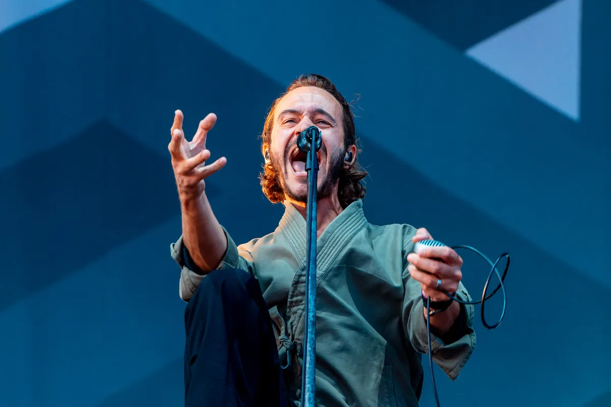 Zo hey, de echte Editors-fan (en dus ook de doorgewinterde Pinkpop-ganger, dit is de zesde keer dat die band er staat sinds 2006) hoort het meteen: er mag gedanst worden. Vanaf startschot ‘Strange Intimacy’ swingen de heupen van Tom Smith als nooit te voren. Belangrijke spil in die nieuwe sound van de Britse band is die baardige dude rechtsachter Smith. Het is Benjamin John Power (aka de intense elektronicaproducer Blanck Mass aka die ene van Fuck Buttons), en hij hielp in 2018 al mee met het produceren van album Violence, maar zijn versie van de plaat werd aanvankelijk afgekeurd. Het was ze allemaal iets te heftig, te elektronisch. Maar uiteindelijk besloten Tom Smith en de zijnen: hey, dit is toch de weg voorwaarts voor de band, en Power trad zelfs toe tot de band met nieuw album EBM. Officieel betekent het Editors/Blanck Mass, maar niet geheel toevallig ook de afkorting van ‘electronic body music', opzwepende duistere synthpop uit de jaren tachtig en negentig. Nitzer Ebb, Front 242, DAF. Meer Depeche Mode dan de kwezelarij van Joy Division en Interpol, zeg maar.