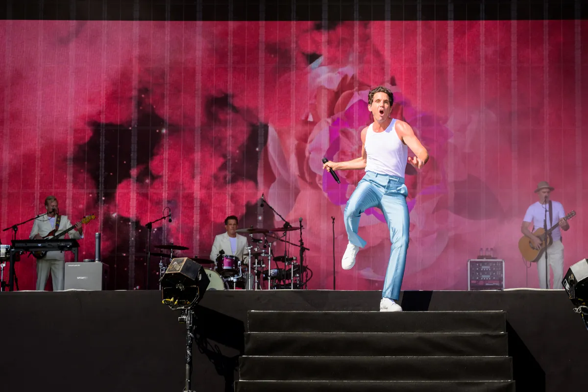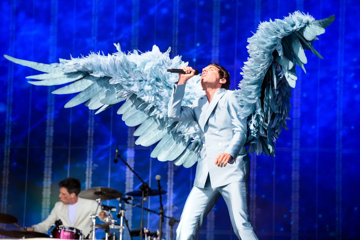 Vuurwerk! Om het podium heen beginnen de mannen in glittertopjes te gillen, de regenboogwaaiers vliegen de lucht in. ‘Oh mijn god, oh mijn god!’ Daar is-ie dan eindelijk, en oh-mijn-god inderdaad: als een volwaardige Victoria’s Secret angel komt MIKA in babyblauwe vleugels het podium op paraderen. Ja, deze Reguliersdwarsstraat-gecodeerde explosie is misschien niet het eerste wat je je bij een PinkPop-show voorstelt, maar het is godverdomme wel suikerzoet roze, en wat staat het MIKA goed. De vleugels gaan af, het jasje gaat los: deze Libanees-Britse wereldster staat te springen om Landgraaf het kleurrijkste uurtje van hun weekend te geven.