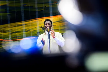 Popzanger Claude heeft een stormachtige tijd achter de rug in de capsule die Eurovisie heet, en dat betekent tegenwoordig vrijwel automatisch een uitnodiging voor Pinkpop. Stralend van oor tot oor en in zijn netste jasje staat de Congolese Nederlander over het veld uit te kijken. ‘Twee jaar geleden bracht ik mijn eerste nummer uit, nu staan we hier, ongelofelijk.’