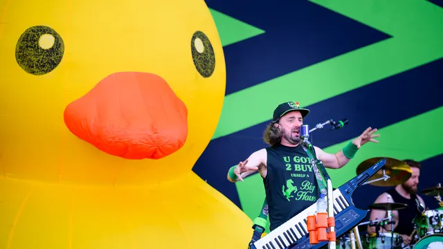 Wat heb je liever, scheurbuik of kielhalen? Kielhalen toch? Tenzij je scheurbuik krijgt van het vele partyen, dan is het wel weer cool. Er zijn festivals die een lijn proberen aan te leggen in hun programma, maar je kunt natuurlijk ook de horkerige piraten van Alestorm programmeren voor de slicke superpop van Justin Timberlake. ‘Zijn jullie al klaar om sexy back te brengen?’, vraagt de vuilbekkende zanger van Alestorm, woeste baard, groene kilt, een geel badeendje op zijn pet. Alestorm is een parodie op een powermetalband die het piratenthema tot in de puntjes uitgewerkt heeft (al had een drummer met een haak niet misstaan). ‘Houden jullie van silly nonsense?,’ roept de frontman, met achter hem een vijf meter hoge badeend. Ehm, arrr!