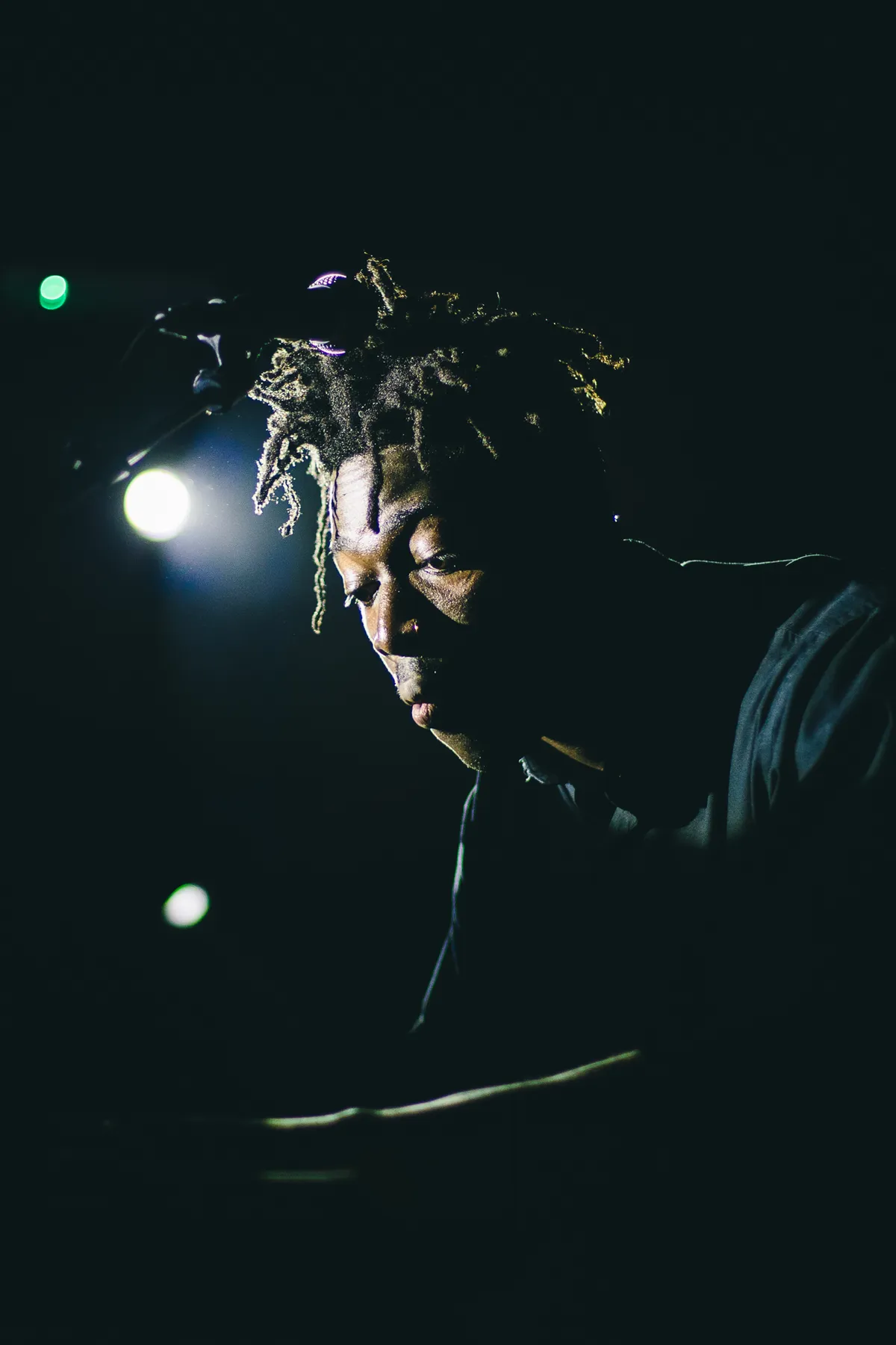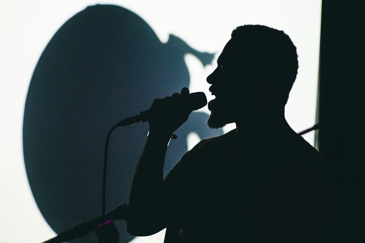 Ja, en dan Sumney zelf, die zijn stem telkens weer samplet en zijn looppedaal vooral gebruikt om een spookachtig nevel over zijn liedjes te draperen, zo organisch dat je het af en toe nauwelijks doorhebt. Met zijn kopstem klimt hij soepel jazzy toonladders op en af, en schiet hij duizelingwekkende hoogtes in. Hij speelt intieme liedjes die langzaam maar zeker opbloeien als je ze de aandacht geeft die ze verdienen. Maar goed: het publiek van REC is er ook om te dansen, en hoewel de mensen vooraan met natte oogjes aan zijn lippen hangen, wordt er achterin aardig doorheen geouwehoerd. Totdat Sumney ze krachtig tot stilte maant. ‘Ik heb hier een mes…’, zegt hij nadat hij een liedje stillegt, ‘als je iemand ziet die praat? Steek ‘m neer!’