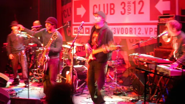 Met de publieke belangstelling voor Relax viel het gelukkig nog mee. De soul-hiphop-jazz mannen uit Haarlem stonden voor de tweede keer in da Club. Nu vanwege hun zeg maar wederopstanding met een nieuwe cd op een nieuw label. Die nieuwe cd heet 'Odeur De Clochard' en valt vooral op door de rielekste jazzy feel en het -soms wat overdadige- gebruik van de trompet. Live tapte Relax echter uit een ander vaatje; in een nummer pakte rapper Llewy Is Sel zelfs de scheur-gitaar en liet een paar Eddie Van Halen-achtige licks horen. Overduidelijk op routine, maar toch zeer strak, rockte Relax da house, euh.. de club. Zo verbluffend als Relax de eerste keer in de club overkwam (precies twee jaar geleden schreef ik op deze plek dat "Relax met zo'n verbijsterend gemak een show neerzet dat je alleen maar met open mond kunt staan kijken en luisteren naar het vakmanschap, het enthousiasme en het vernuft dat dit Haarlemse zestal onder leiding van de charmante voorman Llewy Is Sel aan de dag legt") was het niet meer, maar toch -het was weer top. Vooral de samenwerking tussen voorman Llewy, bassist Bart en drummer Satindra was superstrak. Als die drie gasten een trio zouden vormen zouden ze nog overeind blijven. Valt er dan niks te zeuren? Nee. Of het moesten die identieke sponsor-spijkerbroeken zijn waarin de 6 Relaxers waren gehesen. Daarna trad een tot voor kort volslagen onbekend bandje uit Luttenberg aan: Cafebar 401. Vernoemd naar het koffiezetapparaat in hun oefenruimte, en met de frisheid van middelbare scholieren betraden de vier jonge mannen stijf van de cafeïne, euh... zenuwen het roemruchte Club 3VOOR12 podium. Die zenuwen werden misschien ook wel versterkt door het feit dat de vader van de sympathieke frontboy Tije nog nerveuzer dan zijn protegées ronddribbelde om er op toe te zien dat alles goed ging. We begonnen te vermoeden dat hier niet alleen de jongensdroom van zoon Tije maar ook van papa Oortwijn uitkwam: Met de band! Op een VPRO-podium! Wij! Als Luttenbergers! (Overigens een dorp met de hoogste concentratie VPRO-leden van Nederland- echt waar.) Gelukkig voor iedereen, publiek incluis, kwam de droom uit. Op plaat verraste Cafebar 401 al door een uitermate strak, Europees rockgeluid, waarin vooral de mooie ijle zang van Tije opvalt, live viel de band helemaal niet door de mand. Integendeel. Soulwax ontmoette de Queens Of The Stone Age in de keuken bij Novastar. Natuurlijk viel er wel wat aan te merken -zo misten wij bijvoorbeeld hier en daar een echte pregnante gitaarsolo en gaan sommige nummers net dertig seconden te lang door, maar toch: hier stond een klasbak van en band, die met hun gemiddelde piepjonge leeftijd nog een mooie toekomst voor de boeg kunnen hebben. Als ze niet aan de drugs raken tenminste -maar daar zorgt pa Oortwijn vermoedelijk wel voor :-) Ook de jongensdromen van de Roosendaalse hardrockcore formatie Stockholm Syndrome kwam uit, al was het wellicht op een andere manier dan ze hadden gehoopt. Ze werden ter elfder ure uit bed gebeld met de vraag of ze konden invallen voor uitvaller The Wedding Present en durfden toe te happen. Veel voorbereidingstijd hadden de vier jongens met gekke kapsels (hun eigen omschrijving) kennelijk niet nodig, en, godzij-dank, de band stond als een huis. Strak en kundig ventileerde SS heur woede over Roosendaal, Nederland en de wereld in het algemeen. Alleen was die woede aan maar een enkele Club 3VOOR12 bezoeker nog besteed, want de zaal liep jammer genoeg snel leeg. En SS was niet bij machte en ook niet van zins, om het tij te keren door zoiets onbenulligs als publieksparticipatie, een grappig praatje of een aanstekerballade. Daar zijn het de jongens niet naar. En zo hoort het ook als je hardcore bent. Kein keloel: je doet je ding en dan rot je weer op. God of iemand, zegen hen. Volgende week rust God's zegen hopelijk ook weer op de club, en wel op Daan, Bassholes, The Wedding Present (!) en The Go Find.
