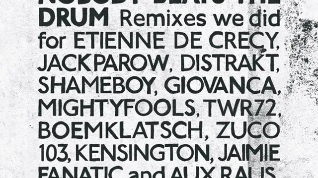 Ze werden zo bedolven onder de remix-aanvragen dat ze niet aan het eigen album toe kwamen. Dan doen we gewoon eerst een remix-album, besloten de jongens van Nobody Beats The Drum. Dus werden nieuwe remixen voor onder meer The Walk and Rogerseventytwo, Distrakt, Jack Parow en Shameboy gebundeld met oudjes voor Giovanca, Aux Raus en Kensington. Die plaat verschijnt 28 januari via Rough Trade en staat nu op de Luisterpaal.