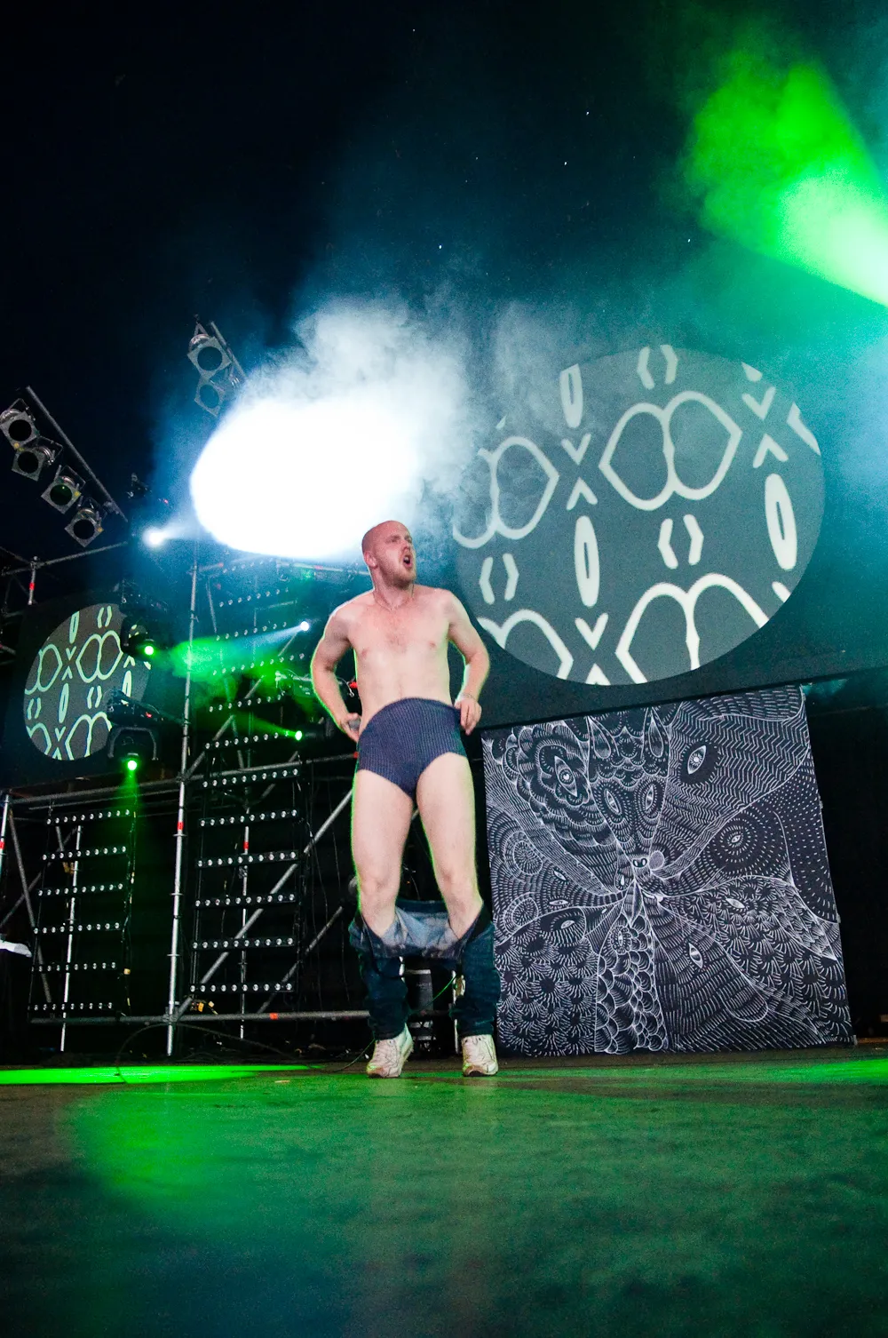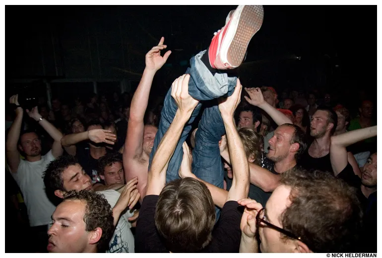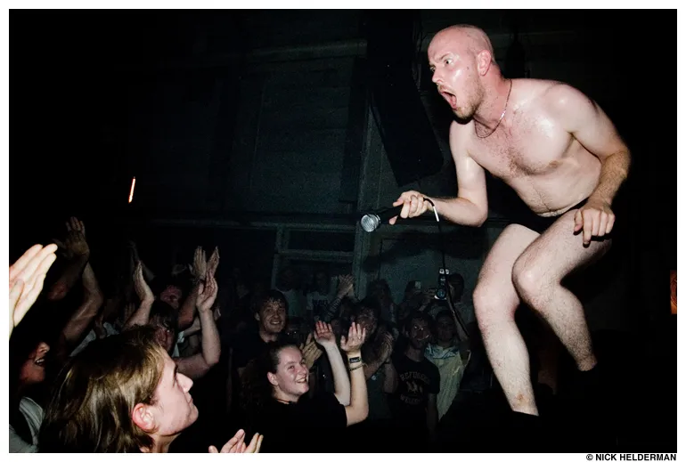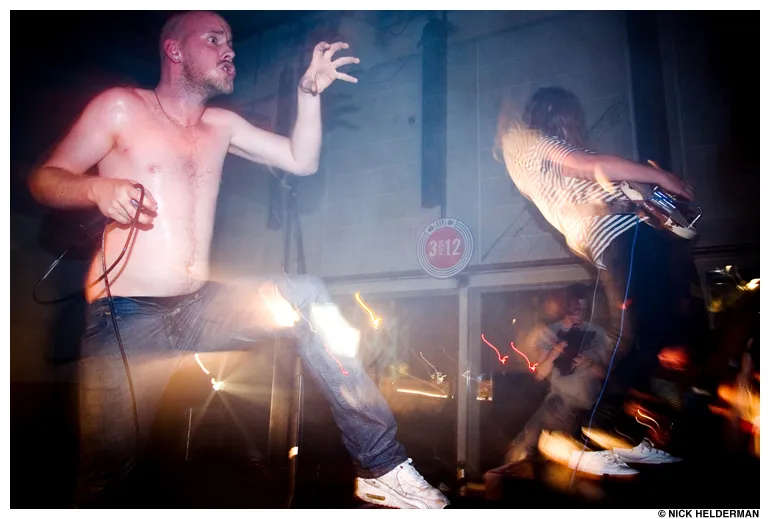 Aux Raus stopt ermee. Jarenlang trok het gabberpunkduo als een tornado door Nederland. Ze wonnen de 3voor12 award, stonden op Noorderslag en Lowlands en brachten drie albums uit. Nu is het klaar. Vrijdag 27 januari is het allerlaatste optreden in Paradiso, met een hele lijst gasten: T Raumschmiere, Joost van Bellen, damespunkband Vrouwen Zijn Okee, cultfiguur Dick El Demasiado en Adolf Butler. 3voor12 dook de archieven in en haalde de meest opwindende Aux Raux foto's boven.