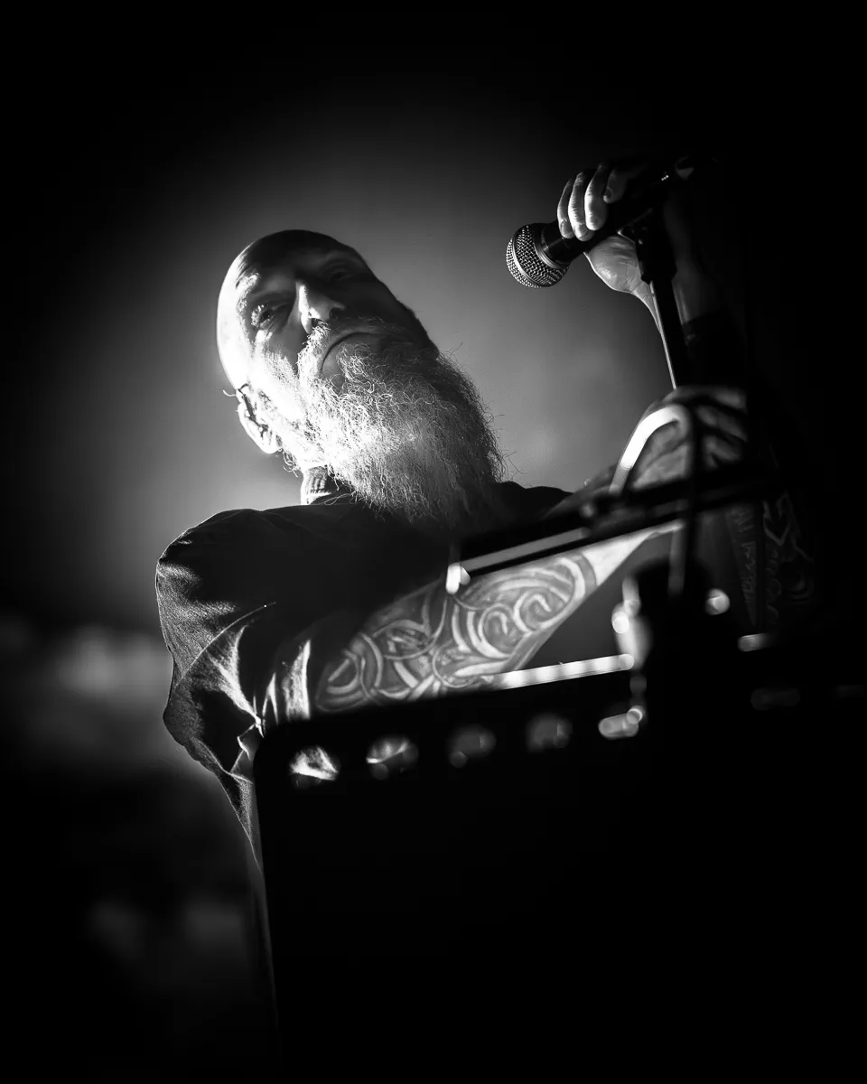 De van Neurosis bekende Steve Von Till is als artist in residence gestrikt en levert drie sets, inclusief een soundtrack voor een gezamenlijke expositie met Thomas Hooper. En hij speelt als Harvestman, een minder bekend alias waaronder hij eerder gedichten uitbracht. In 2024 verscheen een heuse triptiek van Harvestman waarin Von Till zijn dubby psychkant toont. Het mooie van die residentie is dat het hem in staat stelt om dit studioalbum (zijn uitlaatklep tijdens corona) toch live uit te voeren. Zulke zware dub had niemand op Roadburn zien aankomen. Met Steve op gitaar en met een lessenaar plus een Korg voor zich en een kompaan voor meer elektronica serveren ze psychedelica met een lekkere oriëntaalse saus. Steve is de dirigent, die nu — onder gejuich — de dikke dubdrone aanzet. Harvestman is op z'n best als beiden aan de effecten draaien.