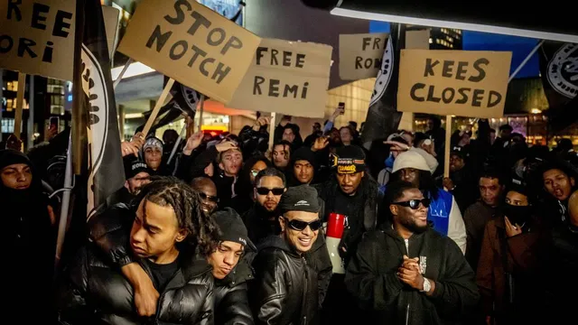 Een dikke honderd mensen verzamelden gisteravond in Rotterdam voor het protest dat Ronnie Flex organiseerde tegen zijn voormalige platenlabel Top Notch. Hij nam er meteen een nieuwe videoclip op, en zo ging het eraan toe.