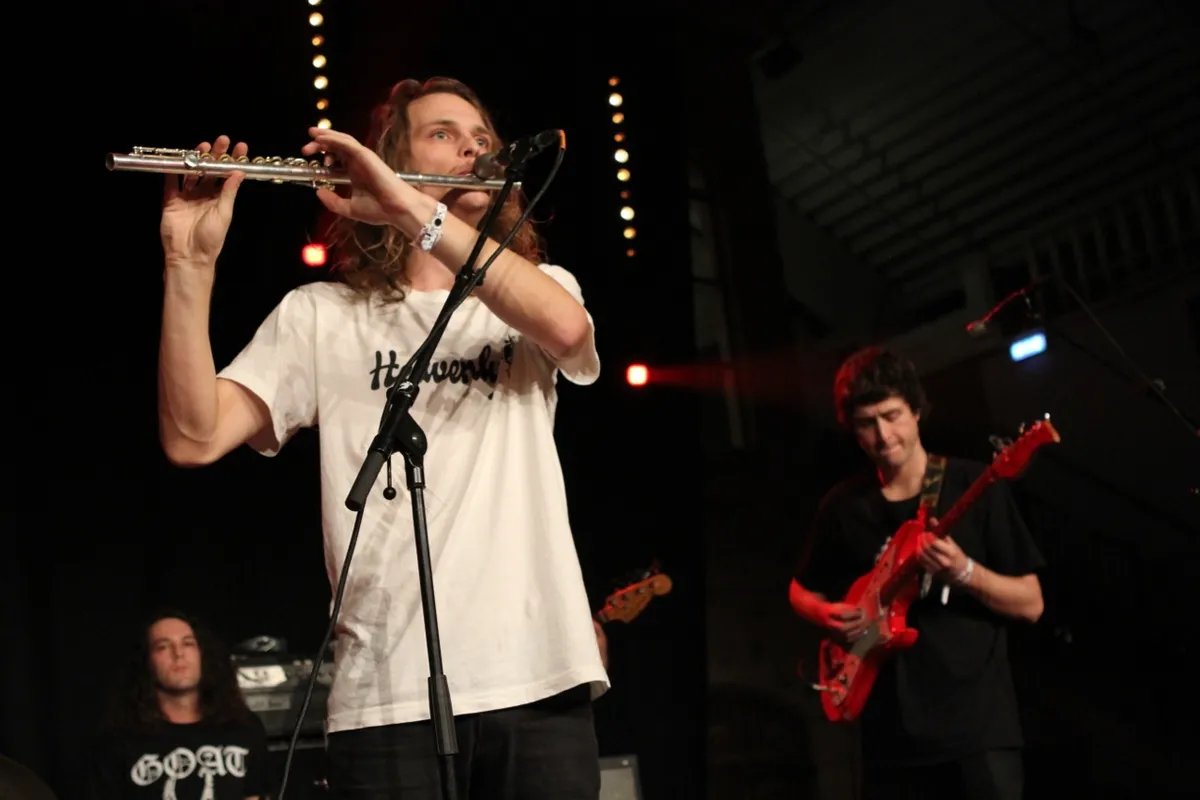 Pas tegen het eind van de avond begint de sfeer wat losser te worden. King Gizzard & The Lizard Wizard profiteren ervan en groeien uit tot de belangrijkste band van de avond. De jonge Australiërs spelen vlammende psychrock met drie gitaristen en twee identiek spelende drummers. Het is alsof je Thee Oh Sees twee keer op het podium zet, met een behoorlijke technische bagage. Dat is goed voor een enorme hoeveelheid energie, maar ze zijn ook niet bang om hun publiek mee te verleiden naar het diepe. Mooiste moment is als de frontman met zijn loensende blik alle tijd neemt om zijn dwarsfluit in elkaar te draaien - nog eens kijken, nog eens keer draaien - om hem vervolgens eerst een paar seconden geluidloos aan zijn lippen te zetten voor ie er een frivole solo uit perst. Als tegen het einde ook het publiek van Balthazar uit de grote tent zich bij de rest voegt, kan King Gizzard naar de apotheose toewerken, met Cellophane als klapper.