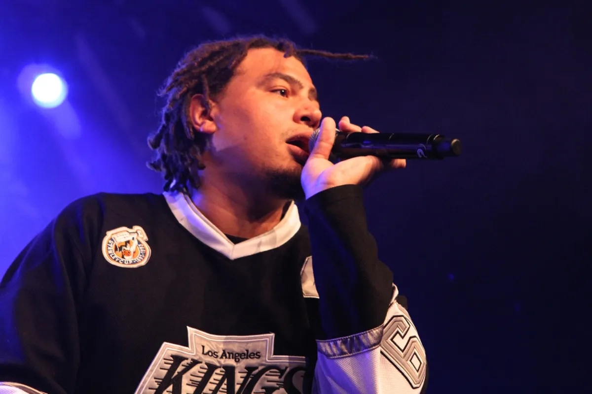 Terwijl in de woonkamer de ijskoude hertendrankjes non stop uit de thuistap en over de grond vloeien, begint Yung Internet met hun optreden. Yung Internet, een trio uit Amsterdam dat rapt over nakkies coke op het Leidseplein, over elk weekend naar de tyfus gaan en over het in de fik steken van je wijf. Een van de twee rappers - Yellie, een knipoog naar de Jellinek - herkennen we als Sergio Hasselbaink, acteur uit o.a. succesfilm Sonny Boy en politie-komedie Popoz. Als rapper is ie al net zo'n karikatuur als wanneer ie agent speelt. "Je kwam stoer praten, wilde moves maken, maar ik heb je geblocked", klinkt het over een kale elektronische beat van Dj Hyperlink. De tracks zijn eigenlijk behoorlijk traag en trippy, maar hier in de bungalow gaan ze dwars door het dak. Niemand staat stil en de verwarming hangt zo scheef dat het warme water eruit druipt.