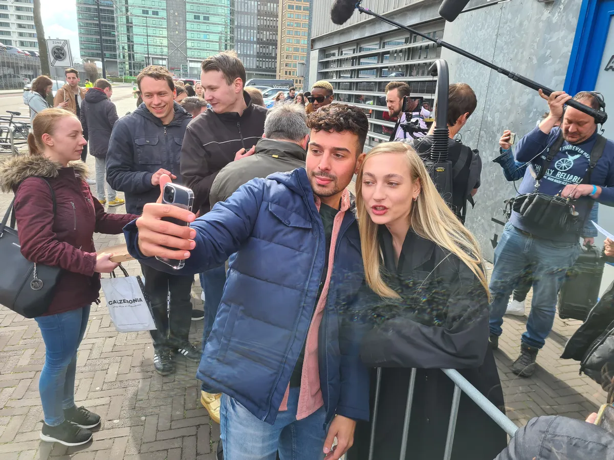Tien meter rechts van de ingang staat S10, verscholen in een loading dock met een zonnebril. Ze staat daar verdekt opgesteld met de complete Nederlandse delegatie van Eurovision en haar manager Froukje Bouma, en ze rookt een sigaret. Even snel. Ze rookt eigenlijk altijd een sigaret. Dan kijkt ze even voorzichtig om het randje. Zo natuurlijk als de Belg speelt S10 het spel nog niet helemaal. Ze voelt zich nog een beetje een buitenstaander, een toeschouwer. En oh ja, ze heeft ook net 3,5 uur non-stop interviews achter de rug, met Eurovisie-fanatici vanuit heel Europa. ‘Ja, dat kan ik dus kennelijk, zo lang focussen. De AFAS werd vanmiddag even een bubbel, echt hyperfocus, daar buiten was eventjes niks. Het is heel dankbaar, want Songfestival-liefhebbers zijn vooral fan van het evenement. Dat je daaraan meedoet is al genoeg. Nu ben ik wel even kapot hoor. Ik ga straks wel even selfies maken, eerst even een momentje voor mezelf.’