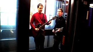 Als ik ze tien minuten later zie lopen op weg naar een lege kamer waar ze nog even twee nummers voor vanavond willen repeteren, herinner ik hem aan zijn belofte. Hij wil wel, maar twijfelt toch: "We moeten A Higher Power nog repeteren, dat hebben we nog niet samen gedaan!" Maar celliste Robsahm wil graag: "Dan doen we de repetitie toch in de lift?" Het enthousiasme wint het tenslotte van de ratio, een kruk wordt uit een kamer gesleept voor Robsahm en de lift opnieuw gekaapt voor vijftien minuten.