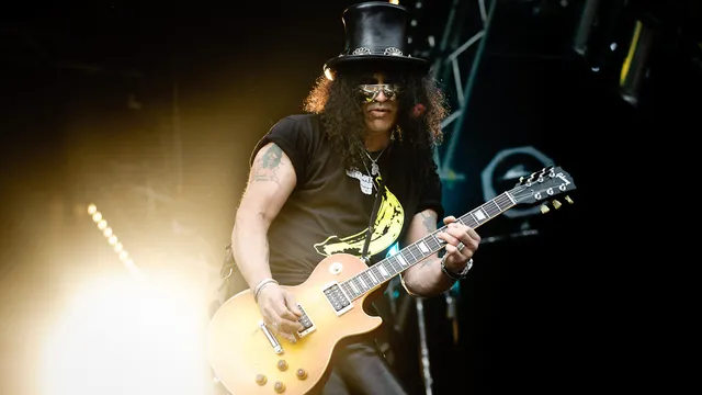 Slash, de voormalige Guns 'N Roses gitarist, is een icoon. Gelukkig ziet hij er tot op de dag van vandaag uit zoals hij eruit moet zien: hoge hoed, leren broek, zonnebril en dat lange krulhaar dat er nooit, nooit, nooit vanaf mag. Maar kon hij ook nog gitaar spelen?