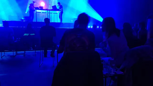 Een stel dat midden voor het podium zit heeft net voor aanvang van de show - de bar sluit om 8 uur - nog even vier cocktails en twee biertjes ingeslagen en gaat ervoor. Een paar meter verderop zit een koppel met een meer afwachtende mood, alsof we naar een strijkkwartet zitten te kijken. Op het podium is er weinig afwachten bij. Sjam en Sluwe staan achter een grote tafel vol hardware, waarmee ze zich tijdens de lockdown terug trokken in een huisje om een album te maken. Daarmee verzilveren ze een belofte die al een tijdje in de lucht hing. Ze scoorden al eens samen een dansvloerhit met ‘Never Know’ en traden heel af en toe samen open, onder meer op het kleinste podium van Down The Rabbit Hole. Het schijnt af te zijn, dat album, maar een releasedatum is nog niet bekend. Sjam en Sluwe vliegen er meteen vol in. Misschien zelfs wel iets te vol, een beetje opbouw had best gemogen. Aan de andere kant: gestrekt been is de strategie die we de komende maanden vaker gaan zien.