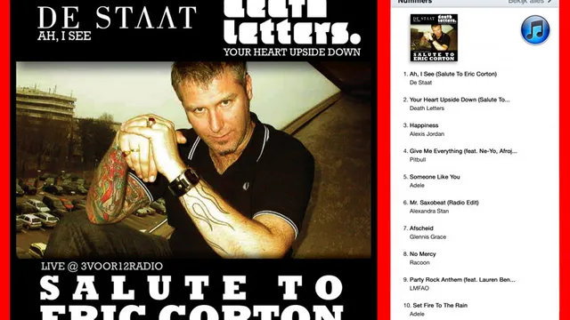 Maandag verraste De Staat-frontman Torre Florim dj Corton met een opmerkelijk cadeau: samen met Death Letters brengt de rockband een splitsingle uit met nummers die ze live in de studio speelden. De single heet Salute To Eric Corton, live @ 3VOOR12RADIO en bevat van De Staat het nummer Ah I See en Death Letters levert de song Your Heart Upside Down. De Staat speelde maandag vijf nummers, die uitzending hoor je hier terug. De uitzending van dinsdag met Death Letters vind je hier.