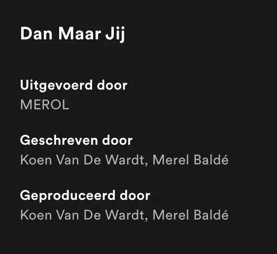 Sinds februari 2018 kun je al op Spotify doorklikken om de credits achter nummers te zien. Daar zie je de uitvoerenden, de schrijvers en de producers achter een nummer. Zo ontdekten we bijvoorbeeld dat Lionel Richie en Ronald LaPread van The Commodores geld verdienen aan ‘Energie’ van Ronnie Flex, dat Bizzey heeft meegeschreven aan alle tracks van Famke Louise, en Ramiks de beats voor Op Me Monnie en LIT maakte. Oh ja, en dat de vriendin van Lucky Fonz III daadwerkelijk heeft meegeschreven aan ‘Linde met een E’.