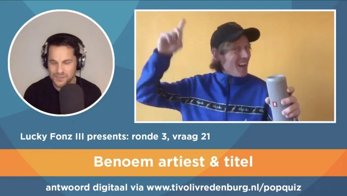 Hoe werkt die popquiz? Het enige wat je hoeft te doen is een team vormen, de stream bekijken op de TivoliVredenburg-site en de Google-formulieren die bij de stream staan namens je team invullen. De quiz heeft vijf rondes, en die bestaan niet alleen maar uit plaatjes raden. In ronde één moet je al een nummer linken aan een Nederlands popfestival, en het niveau is soms best pittig. St. Paul laat ‘Everywhere’ van Fleetwoord Mac horen, en vervolgens moeten de deelnemers de link leggen naar het Terschellingse festival Oerol. Want: ‘everywhere’ vertaald naar het Nederlands is ‘overal’, en ‘Oerol’ is dan weer de Terschellingse vertaling van ‘overal’. Snap je?