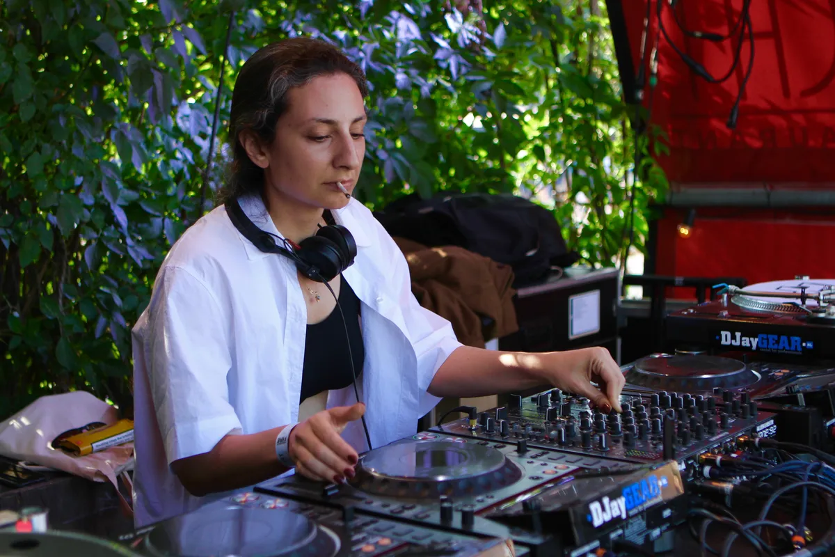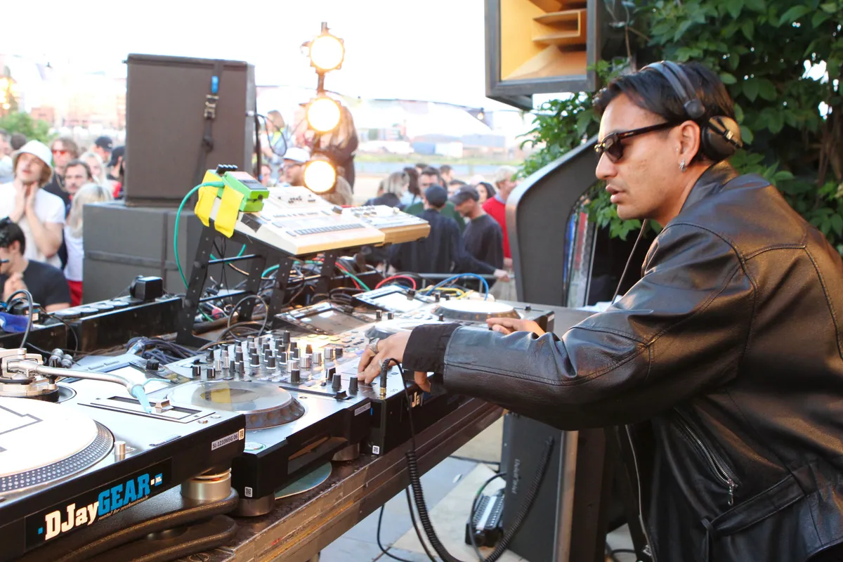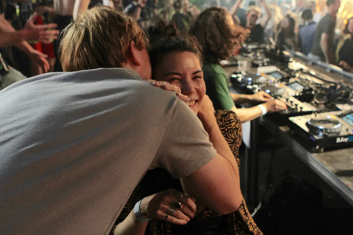 Niet zo stoer natuurlijk als de man die Red Light Radio inmiddels afsluit: Parrish Smith. In de Amsterdamse underground groeide hij in korte tijd uit tot een superster, en zo ziet hij er met zijn zonnebril en leren jas ook uit. Parrish Smith staat bekend om zijn voorliefde voor genadeloze EBM uit de jaren tachtig, maar hij slingert er ook rustig een Vince Staples of Slowthai hiphopplaat doorheen. De hele dag al was het afgeladen vol bij Red Light, maar nu wordt er eindelijk ook echt volop gedanst.