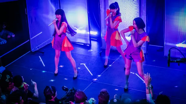 Uitgerekend op het moment dat in Nederland het persbericht binnen rolt over ‘groot nieuws’ over K3, staan in Austin flinke rijen voor drie Japanse meisjes die verdomd veel aan het Vlaamse kindergroepje doen denken. Het is zo’n rij die lange tijd nergens heen lijkt te gaan: de zaal binnen is voor 90% gevuld met Japanners, en die gaan nergens heen. Dan komt er een grote witte tourbus voorgereden, waar de drie meisjes in hun kittige oranje-paarse jurkjes uit huppelen, een witte glittermic in hun handen geduwd krijgen en het podium op stormen. De wachtenden in de rij hebben in elk geval een bewogen smartphone-pic als aandenken.