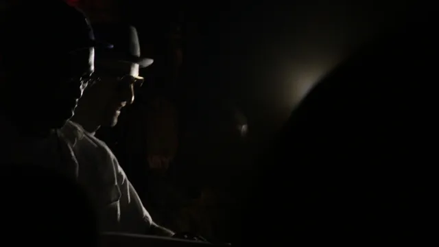 Eenmaal aangekomen in de bus valt mn mond bijna open van verbazing. Zwart leren bekleding op de twee comfortabele zithoeken, diverse bars en koelkasten, een stuk of tien bedden, vijf flatscreen tv’s en overal volle flessen met drank. Vooral veel drank. Aangezien we geen ijs hebben, besluiten we dat te gaan halen met de auto van hussleraar Jabar. Dat blijkt verdomme een indrukwekkende donkerpaarse classic Impala te zijn. Great! Deze mensen maken geen grappen dus dat belooft wat… Na de bus te hebben voorzien van wat goodies besluiten we daarmee INT en onze cameraman Orville op te halen in het hotel. We eten wat bij Homemadeslice en zetten onze kroegentocht voort in de bus. First on the list is the Stonesthrow / Converse party. DJ Amir speelt daar en ik heb m beloofd dat we even langskomen. Eenmaal binnen blijkt t feest al behoorlijk poppin te zijn. J Rocc, Peanut Butter Wolf, Madlib en de rest van het Stonesthrow camp rocken de crowd strictly met 45s vanavond en het dak gaat eraf.