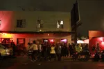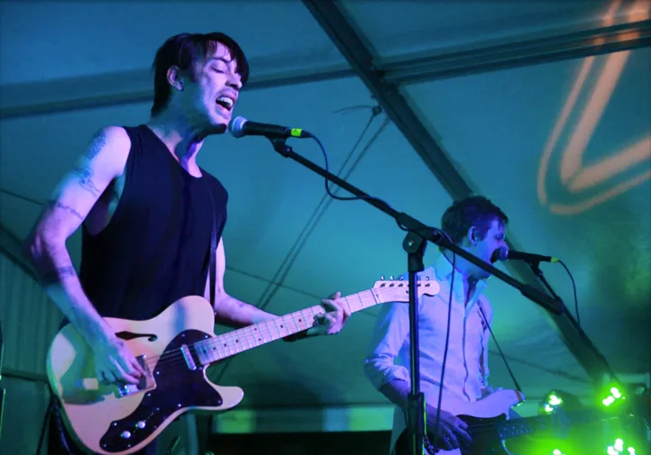 De beste plek om FIDLAR te zien: door het raam. De rij voor de populaire garagerockband staat tot helemaal achter in de tuin van Hotel Vegas, dus binnenkomen is geen optie. Het is daar goed toeven, want op het binnenplaatsje staat een dubbel podium waar je bands kunt wegtikken als een kettingrokende havenarbeider. Veertig bands staan er vandaag maar liefst, waarvan FIDLAR de bekendste is. De FIDLARs geven een shout-out aan de geweldige band Pangea die even eerder een deur verderop speelden, en jakkeren de ene na de andere song er doorheen. Een stuk minder subtiel dan op hun plaat, maar wel met veel energie, die door het lage plafond geen kant op kan. Hun odes aan goedkoop bier en andere belangrijke zaken des levens doen het kennelijk goed bij de zwetende meisjes op de eerste rij, die je door het raam heel goed kan zien. Ze worden van achteren bijna het podium op geduwd en vinden dat heerlijk. Het zweet druppelt van de opzette snoek boven de bar. Als het zo'n pratend ding was geweest, had ie gezegd dat het goed was. (Atze de Vrieze)