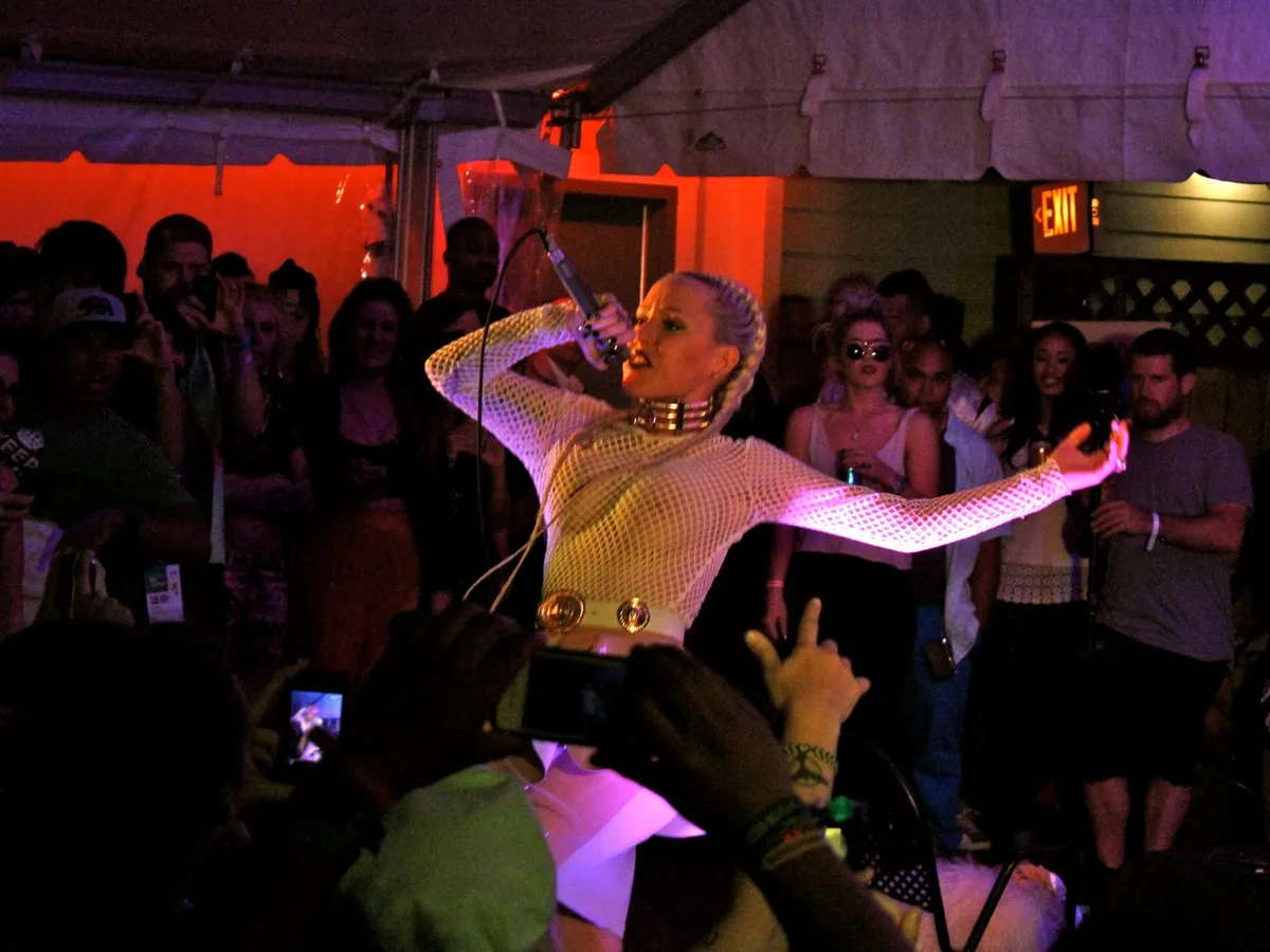 De Californische rapster Brooke Candy is bisexueel. Telt dat dan? Ik vind van wel, zeker ook omdat ze haar fans de #fagmob noemt. Zowel stripper als rapper opent ze haar optreden met de vraag: "can you see my nipples?" Dat kunnen we inderdaad maar al te goed, dwars door haar gaastruitje heen. Ze kreeg vorig jaar enige bekendheid door haar rol in de video van Grimes' Genesis, maar staat sinds een half jaar ook zelf in de spotlights. Haar stijl combineert seksisme en feminisme, met tracks als I Wanna Fuck Right Now, Pussy Make The Rules en Das Me ("Next time they call you a slut, Brooke Candy tells you not to give a fuck"). De tracks zijn goed en het publiek gaat helemaal los, maar haar liveraps zijn niet best. Haar enige redding hierin is het feit dat de raps gewoon vanaf band komen en zij er slechts op laag volume overheen rapt. (Christiaan Walraven)